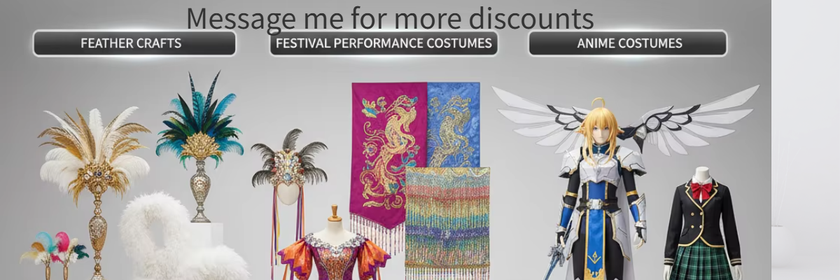 Our company specializes in the production and processing of feather fans, feather fire strips, feather angel wings, carnival feather headbands, feather DIY, feather raw materials, feather-related crafts and other holiday crafts. Popular in many countries.