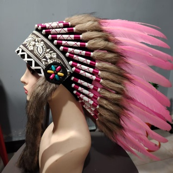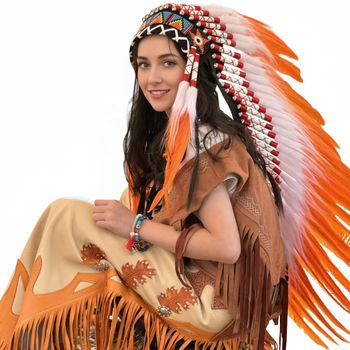 Tocado indio pluma salvaje jefe sombrero accesorios para el cabello tocado juego de rol ropa decorativa hecha a mano 120cm